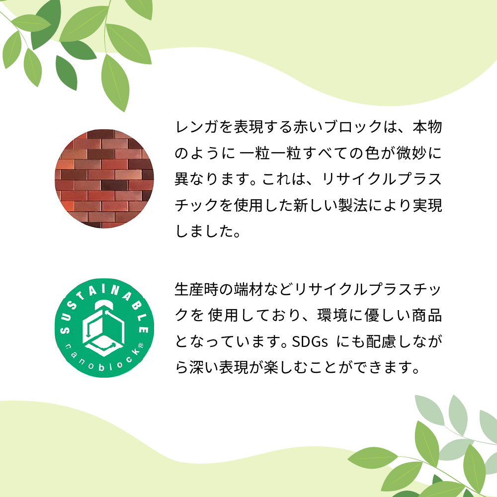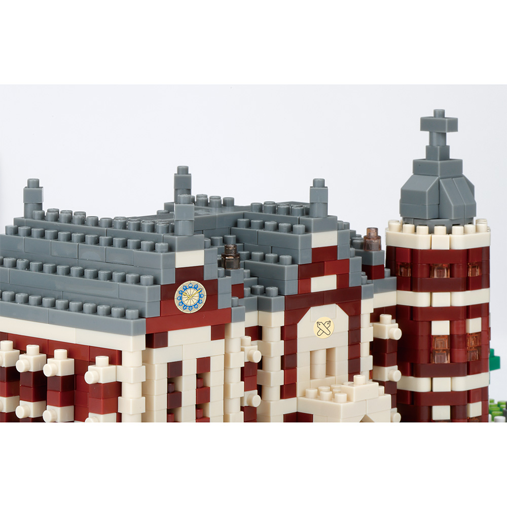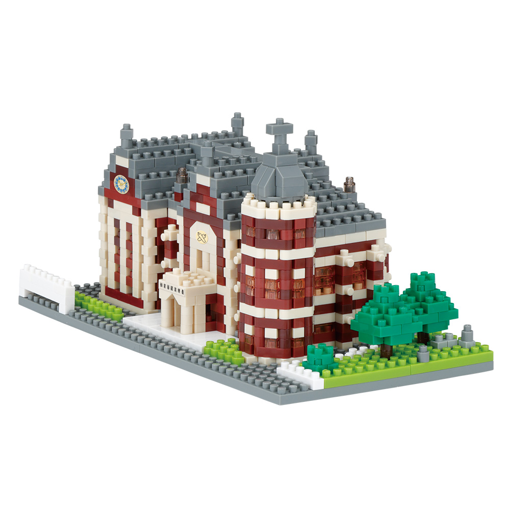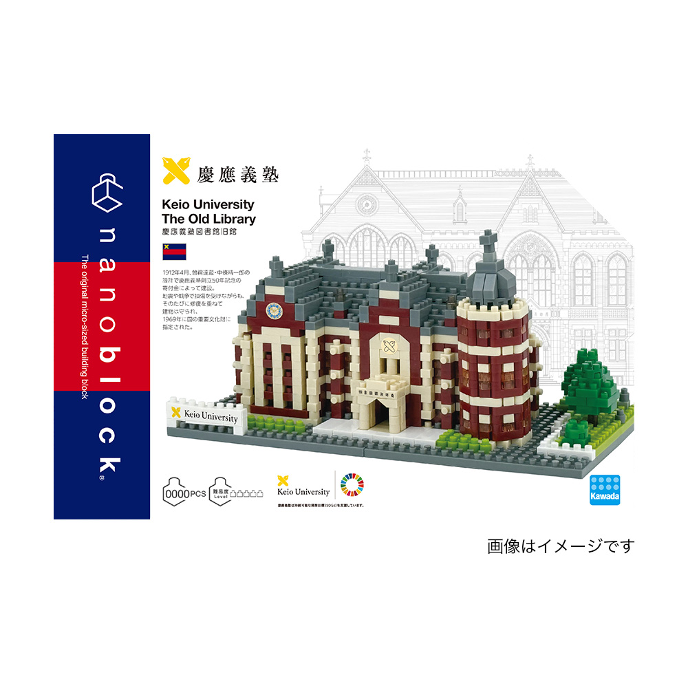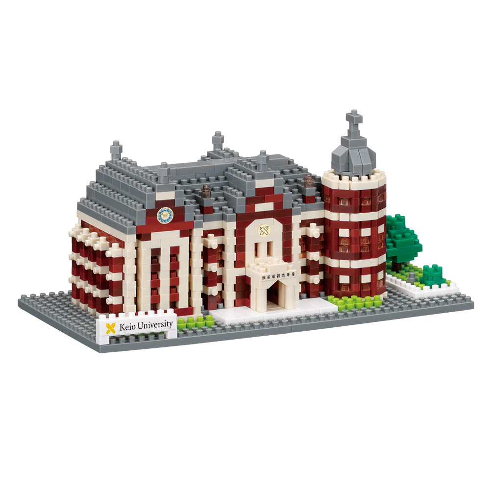 リサイクルプラスチックを原材料に含んだこの特別なブロックで、慶應義塾の象徴である「図書館旧館」を再現いただけます。
